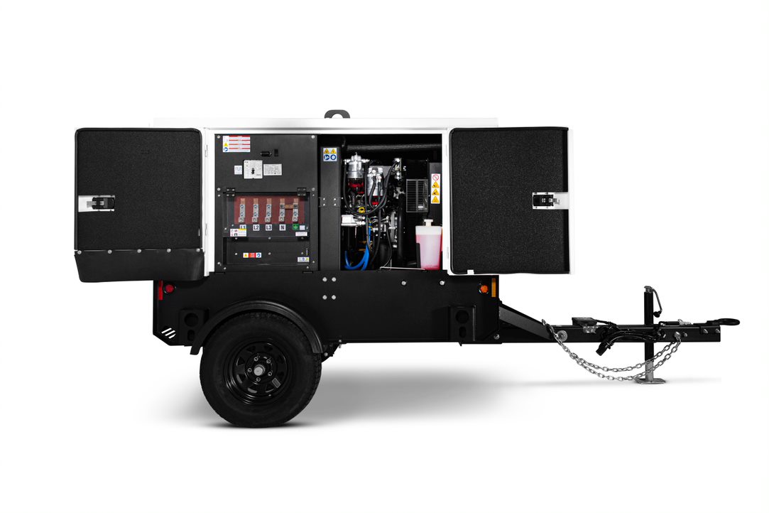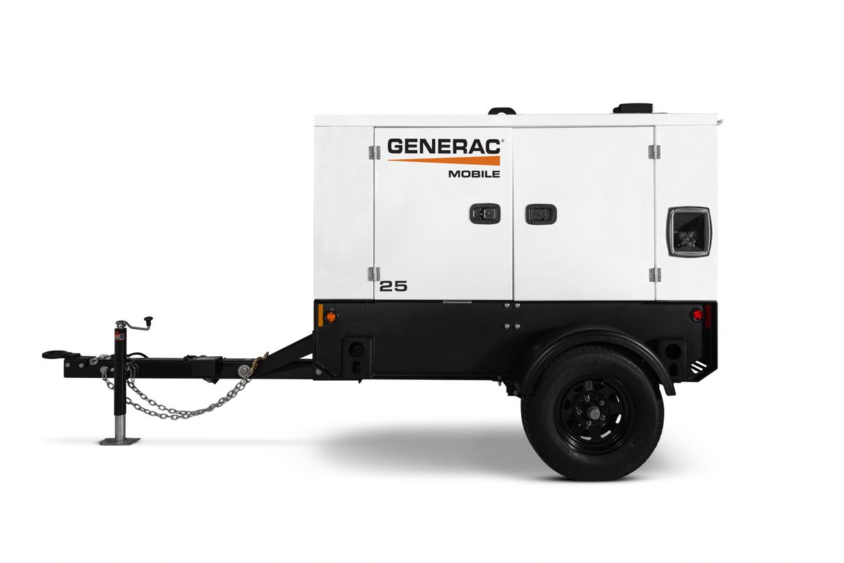 The MDG25IF4 mobile diesel generator from Generac Mobile provides three-phase 25kVA prime power in a compact cabinet. The new cabinet design enables maximum space and transport efficiency while making the generator easy to maneuver and tow. The Final Tier 4 Isuzu engine is reliable and easy to maintain, requiring no diesel particulate filter (DPF). Standard safety features enhance safety and security on the job.