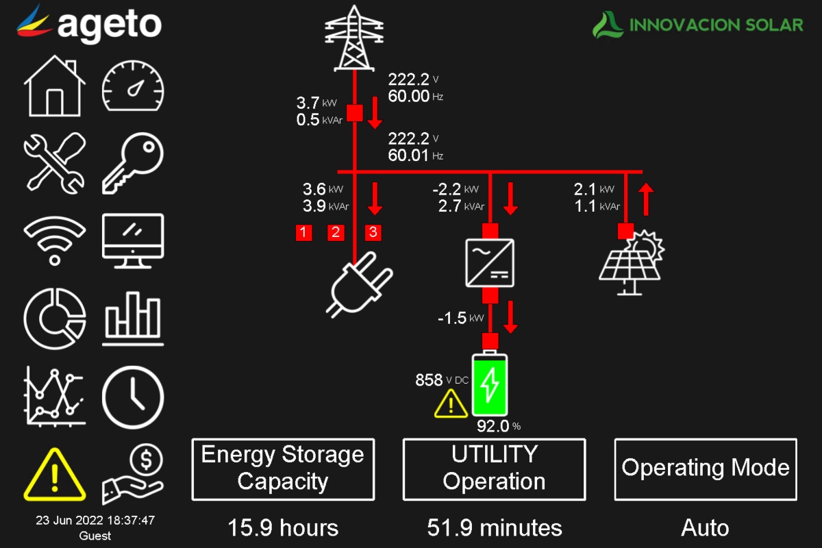 During normal operation, the ARC controller will optimize energy savings by discharging the battery at peak energy usage, keeping the demand under the demand charge management limit at all times. The area’s Federal Electricity Commission does not allow for solar export back to the grid. To meet this requirement, active solar curtailment is also incorporated into the controls of this system, assuring there is zero export while utilizing the maximum amount of renewable energy.