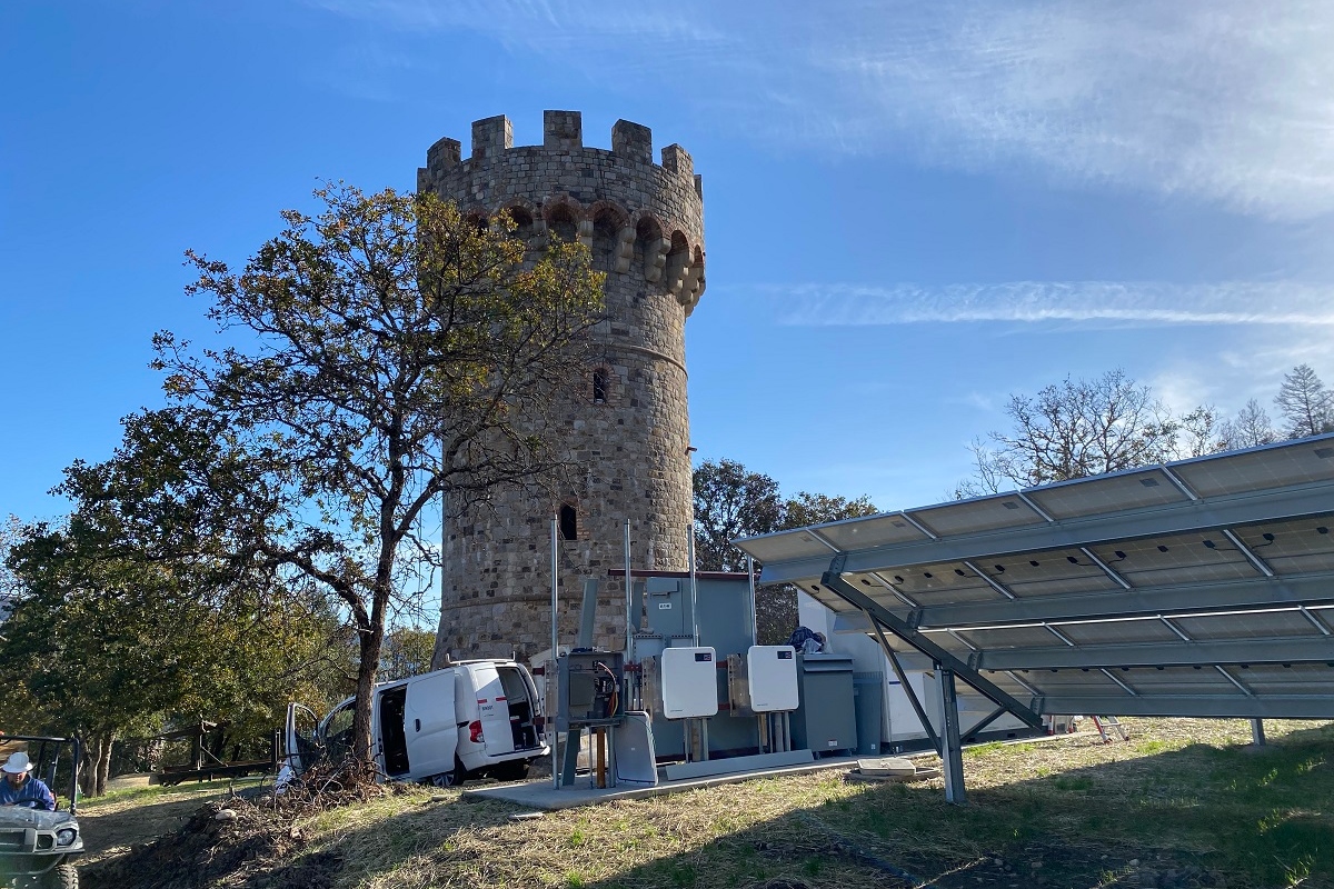 Castello Di Amorosa, an authentically-styled Tuscan Castle nestled amongst the vineyards of Napa Valley, offers tours, winemaking, and tastings. This unique destination is connected to the PG&E grid and has felt the effects of wildfires, Public Safety Power Shutoffs (PSPS) and the power distribution challenges California has faced. With the addition of 375 kW of solar and a 250 kW by 556 kWh energy storage system, along with an upgrade of the existing generator for paralleling capabilities, the facility no longer needs to worry about the lights going out on their valued guests, or on their valuable grapes.