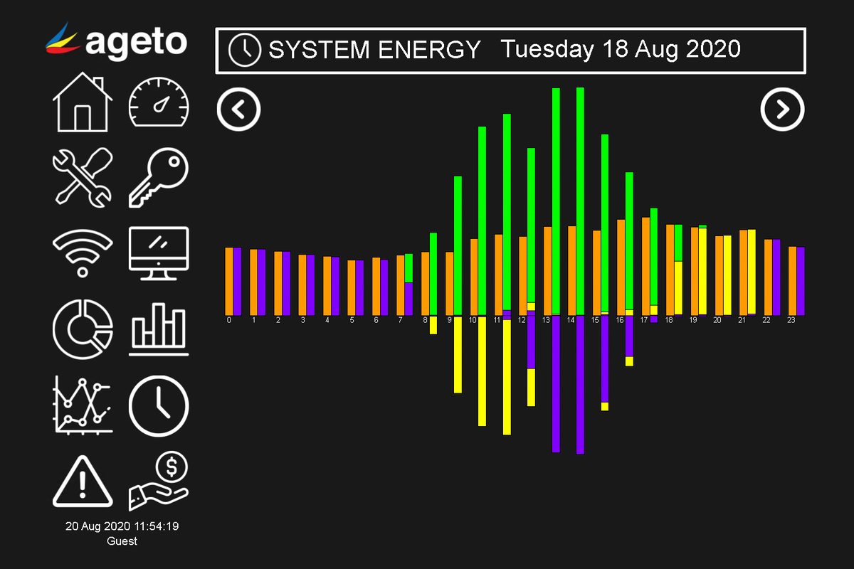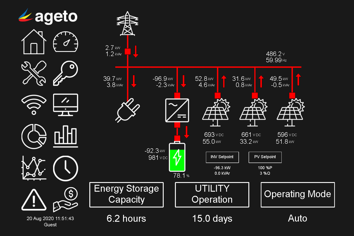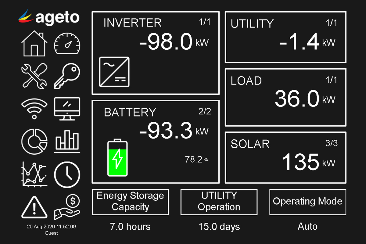 The microgrid controller monitors the load and real-time battery capacity to calculate an ‘Energy Storage Capacity’ which provides an estimate on how long the building can run on just backup battery power.