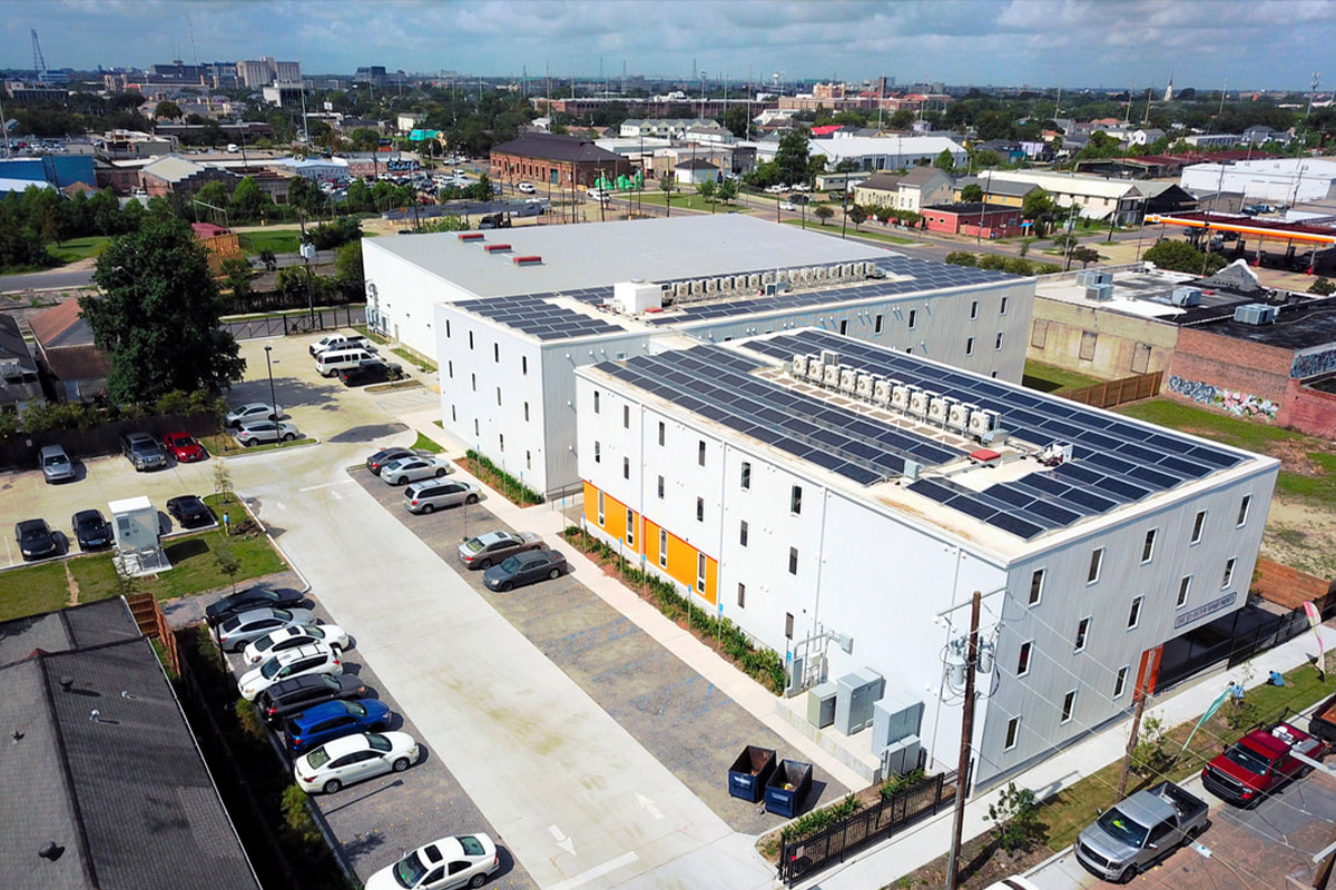 Louisiana’s first commercial-scale solar plus storage microgrid provides sustainable and resilient power to a net-zero apartment building. Half of the affordable housing qualified apartments are reserved for veterans. Between the solar plus storage microgrid power system and high-efficiency appliances, the residents will have minimal power bills.