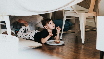 This might be a good time to spend the night together as a family. You can drag bedding into a central room and pretend you’re having a big sleepover. Grab favorite blankets, teddy bears, toys—anything that will help them feel safe. They might be missing their electronics: TV, video games and more. Sympathize and tell them you miss yours too.